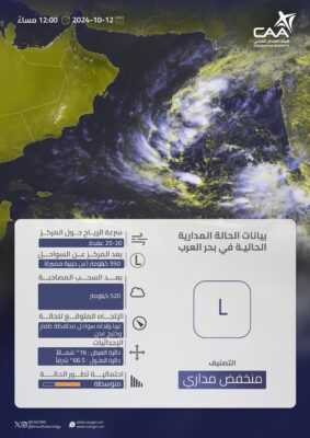 ذكرت الأرصاد الجوية العمانيــة عبر حسابها الرسمي على منصة اكس مستجدات الحالة الجوية في ⁧‫بحر العرب‬⁩ وهي كالتالي: التصنيف: منخفض مداري