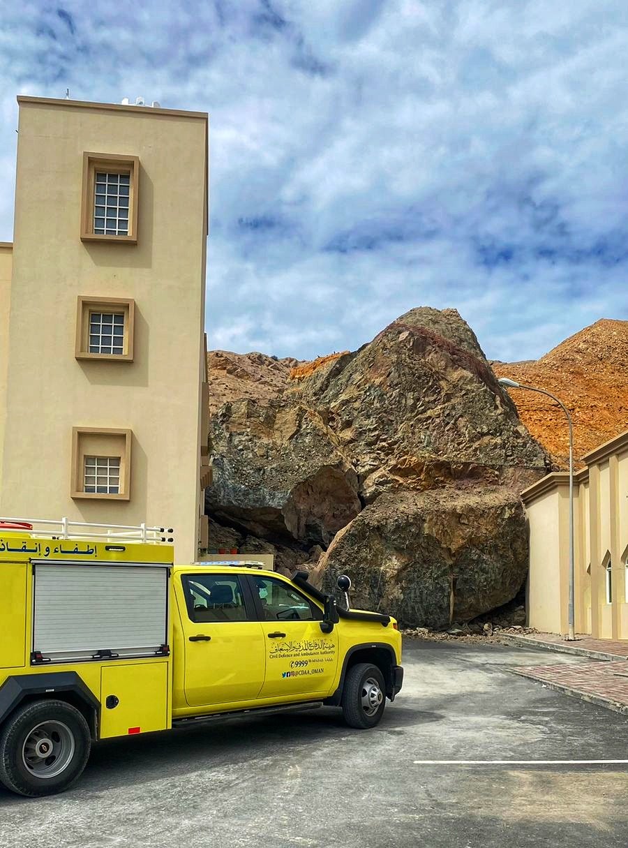 تعاملت فرق الهيئة بإدارة الدفاع المدني والإسعاف بمحافظة مسقط مع بلاغ انهيار صخري على مبنى سكني بولاية مطرح، حيث تم إخلاء (17) شخصاً ونقلهم إلى مكان آمن ، دون تسجيل إصابات