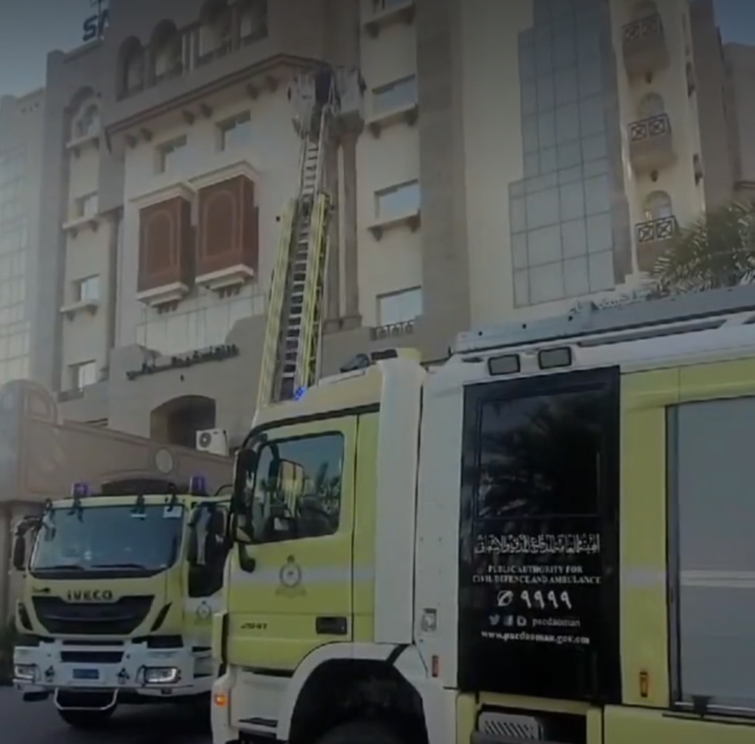 تمكنت فرق الإطفاء بإدارة الدفاع المدني والإسعاف بمحافظة مسقط من إخماد حريق شب في أحد الفنادق بولاية بوشر، حيث تم إخلاء المبنى وإنقاذ المحتجزين بواسطة الرافعة الهيدروليكية، وهم بصحة جيدة.