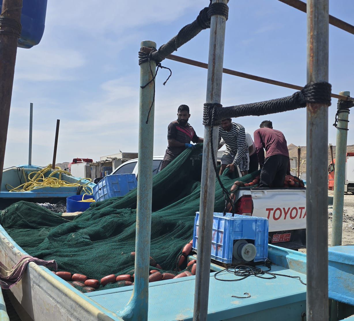 تمكن فريق الرقابة السمكية التابع للمديرية العامة للثروة الزراعية والسمكية وموارد المياه بمحافظة الوسطى يضبط في ساحل شنة بولاية محوت قارب صيد بدون لوحات ارقام به عدد (10 ) قطع من شباك التحويط بالحلقات الغير مرخصة وجار اتخاذ الإجراءات القانونية تجاه المخالف.