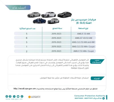 استدعاء (19) مركبة مرسيدس بنز الفئة (E- GLS)
