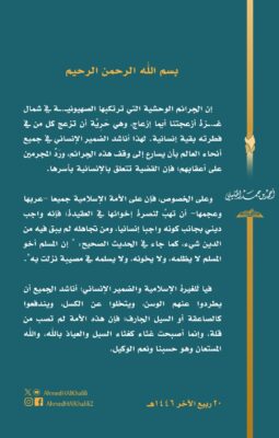 وتابع الخليلي: أناشد الجميع أن يندفعوا كالصاعقة أو السيل الجارف لنصرة إخوانهم، ورَدِّ المجرمين على أعقابهم