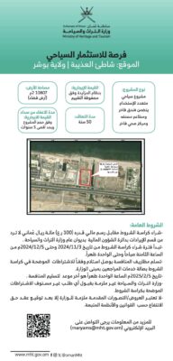 ” التراث والسياحة ” تعلن عن 3 فرص استثمارية في مسقط