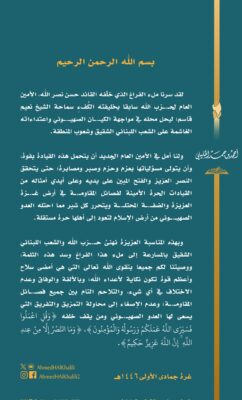 هنأ المفتي العام أحمد بن حمد الخليلي حـزب الله بتعيين خليفة كُفء لأمينه السابق؛ قائلا لقد سرنا ملء الفراغ الذي خلفه القائد حسن نصر الله، الأمين العام لحزب الله سابقا بخليفته الكُفء سماحة الشيخ نعيم قاسم؛ ليحل محله في مواجهة الكيان الصهيوني واعتداءاته الغاشمة على الشعب اللبناني الشقيق وشعوب المنطقة.