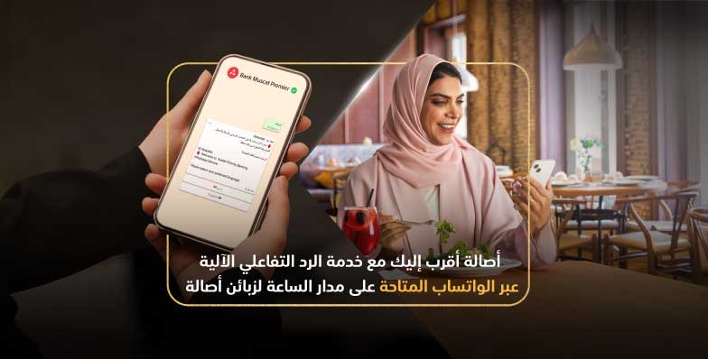 ترجمة لرؤيته “نعمل لخدمتكم بشكل أفضل كل يوم” ومواكبة لاستراتيجيته في تعزيز التواصل مع الزبائن، يتيح بنك مسقط، المؤسّسة المالية الرائدة في سلطنة عُمان، خدمة التواصل الآلي عبر تطبيق الواتساب مخصّصة لزبائن الأعمال المصرفية المميزة “أصالة“ إذ يمكن للزبائن الاستفادة من هذه الخدمة ومزايا البحث المتطورة باللغتين العربية والإنجليزيّة؛ وذلك لمعرفة المنتجات والخدمات التي يقدمها البنك في مجال الأعمال المصرفية المميزة. ويمكن للزبائن استخدام هذه الخدمة عبر تطبيق الواتساب للرد على مختلف الاستفسارات وذلك خلال الفترة من الساعة 8 صباحًا وحتى 10:30 مساءًيوميًا وطوال الأسبوع إذ سيقوم موظفو خدمة الزبائن المتخصصين بالرد على كافة الرسائل المرسلة والمتعلقة بالخدمات والتسهيلات الخاصة بزبائن هذه الفئة.