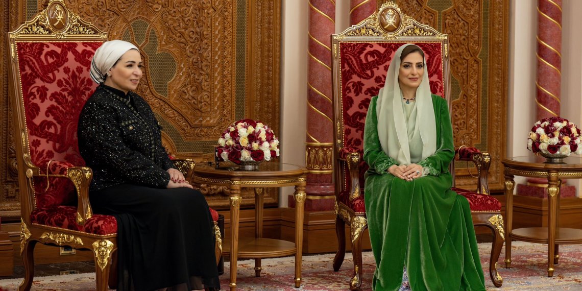 السّيدةَ الجليلةَ حرمَ جلالةِ السُّلطان المعظم/ حفظهَا اللهُ ورعاهَا/ والسّيدةُ حرمُ فخامة رئيس جمهورية مصر العربية تعقدان لقاءً وديًّا بقصر العلم العامر، تم خلاله استعراض عدد من الموضوعات ذات الاهتمام النسائي المشترك، وسبل تعزيز مجالات التعاون القائمة بين البلدين والشعبين الشقيقين.