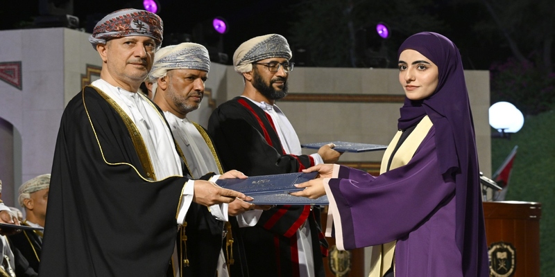 احتفلت جامعة السُّلطان قابوس اليوم بتخريج 1477 طالبًا وطالبةً في الدفعة الـ 35 بالكليات الإنسانية (الاقتصاد والعلوم السياسية، والحقوق، والتربية، والآداب والعلوم الاجتماعية) تحت رعاية معالي سُلطان بن سالم الحبسي وزير المالية في المسرح المفتوح بالجامعة.وشمل الحفل تخريج 439 طالبًا وطالبة من الحاصلين على درجة البكالوريوس من كلية الاقتصاد والعلوم السياسيّة، و442 طالبًا وطالبة من كلية الآداب والعلوم الاجتماعية، و408 من طلبة وطالبات كلية التربية، و188 طالبًا وطالبة في كلية الحقوق.