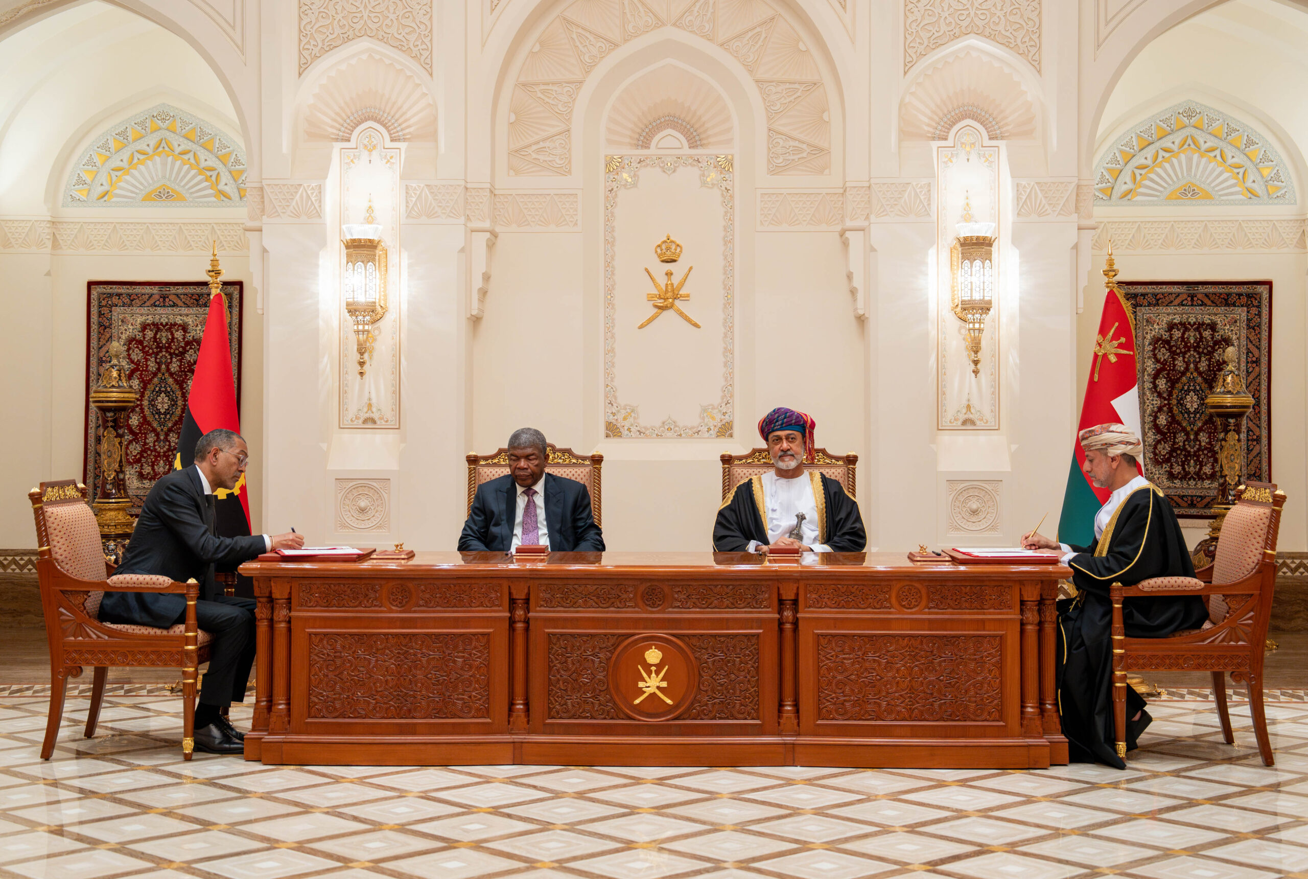 وقع جلالةُ السُّلطان المعظم /حفظه الله ورعاه/ وفخامة الرئيسُ الأنجولي بقصر العلم العامر اتفاقية الاستحواذ على حصة في منجمي “كاتوكا” و”لويلي” في جمهورية أنجولا، ومذكرتي تفاهم في مجالي الطاقة والمبادرات المالية الاستراتيجية.