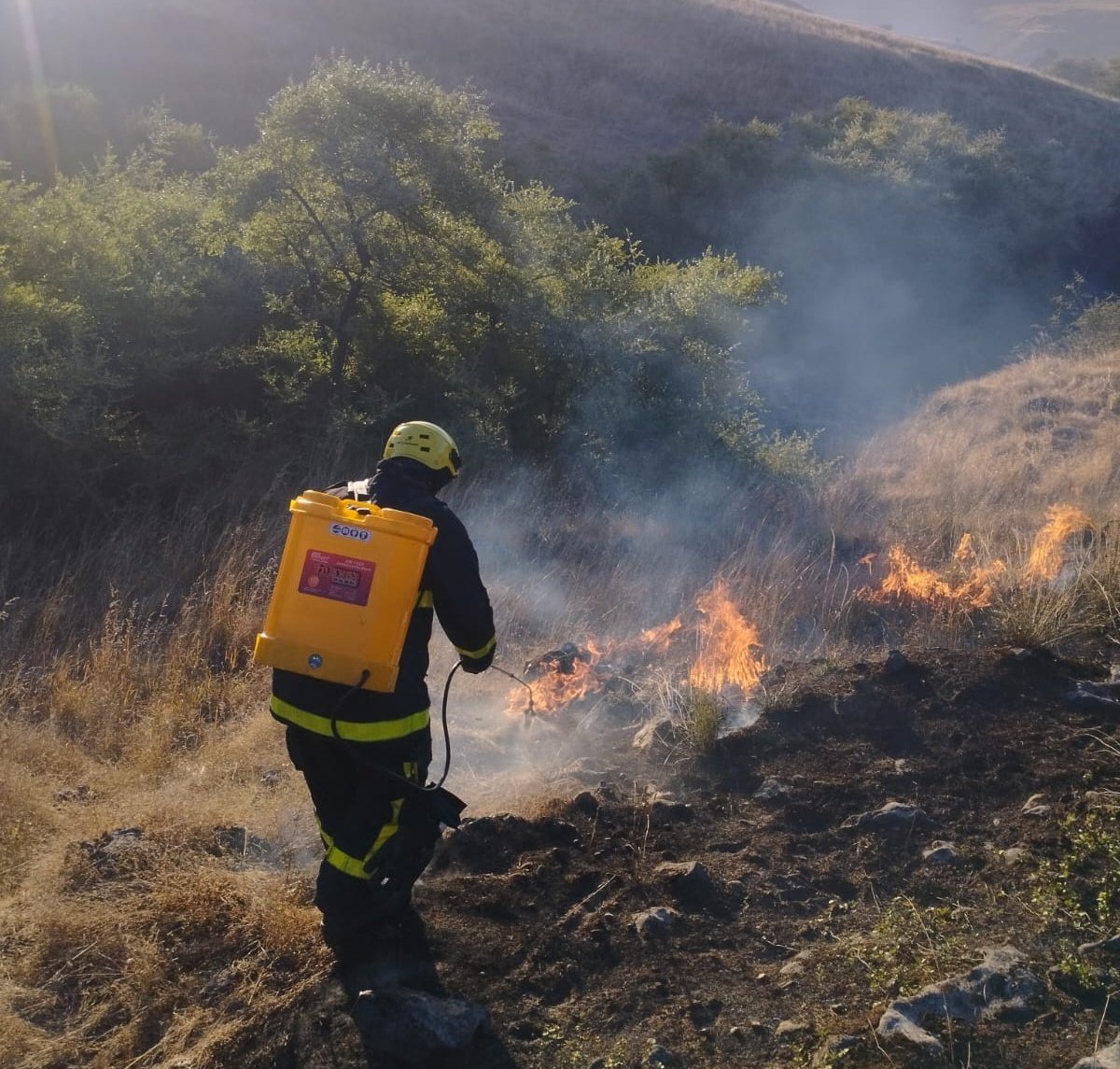 فرق الاطفاء تتعامل مع حريق حشائش بمنطقة قيرون