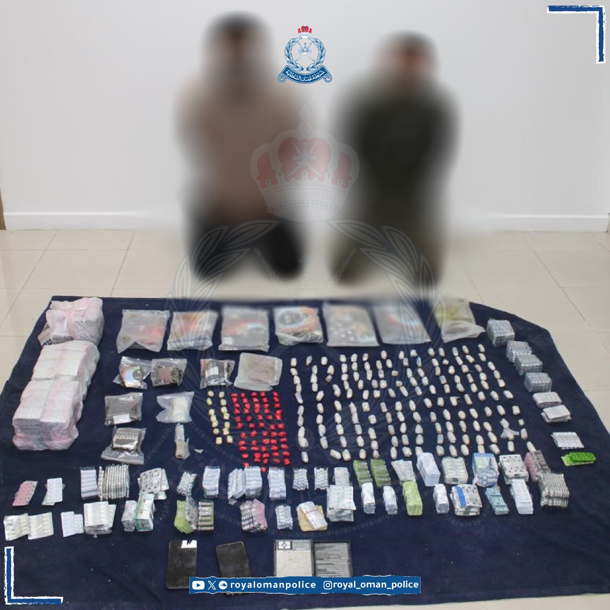 ضبطت الإدارة العامة لمكافحة المخدرات والمؤثرات العقلية شخصين من جنسية آسيوية وبحوزتهما كمية من مخدر الهيروين وأكثر من 29 ألف قرص من المؤثرات العقلية، وتستكمل الإجراءات القانونية بحقهما.