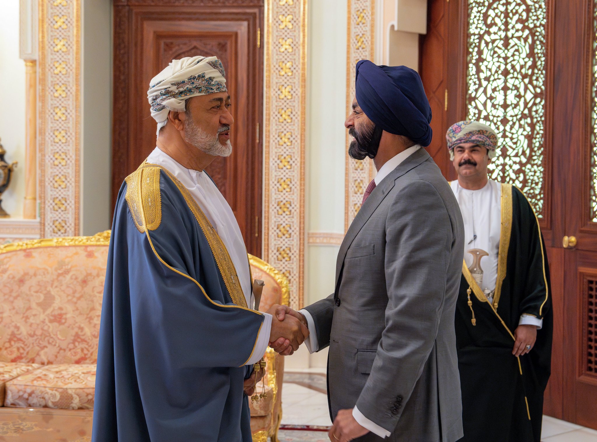 استقبل جلالةُ السُّلطان المعظم /حفظهُ اللهُ ورعاهُ/ رئيس مجموعة البنك الدولي أجاي بانغا بقصر البركة العامر، جرى خلال المقابلة مناقشةُ عدد من الموضوعات الاقتصاديّة والتنمويّة، وبحثُ مختلف جوانب التّعاون بين الجهات المعنيّة في سلطنة عُمان ومجموعة البنك الدولي وسبل توسيع آفاق الشراكة.