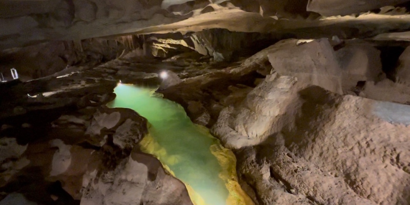 وأضاف أنه تتواجد في الكهف بحيرات مائية يصل عمقها إلى أكثر من 20 مترًا، مؤكدًا أن ما يلفت انتباه الزوار هو روعة التشكيلات الكلسية على جدران الكهف إلى جانب الكائنات الحية المتنوعة مثل الخفافيش طويلة الذيل والعناكب النادرة والأسماك العمياء، كما يوجد في الطابق العلوي من مبنى استقبال الزوار متحف جيولوجي يضم مجموعة متنوعة من الصخور والتشكيلات الجيولوجية الفريدة.