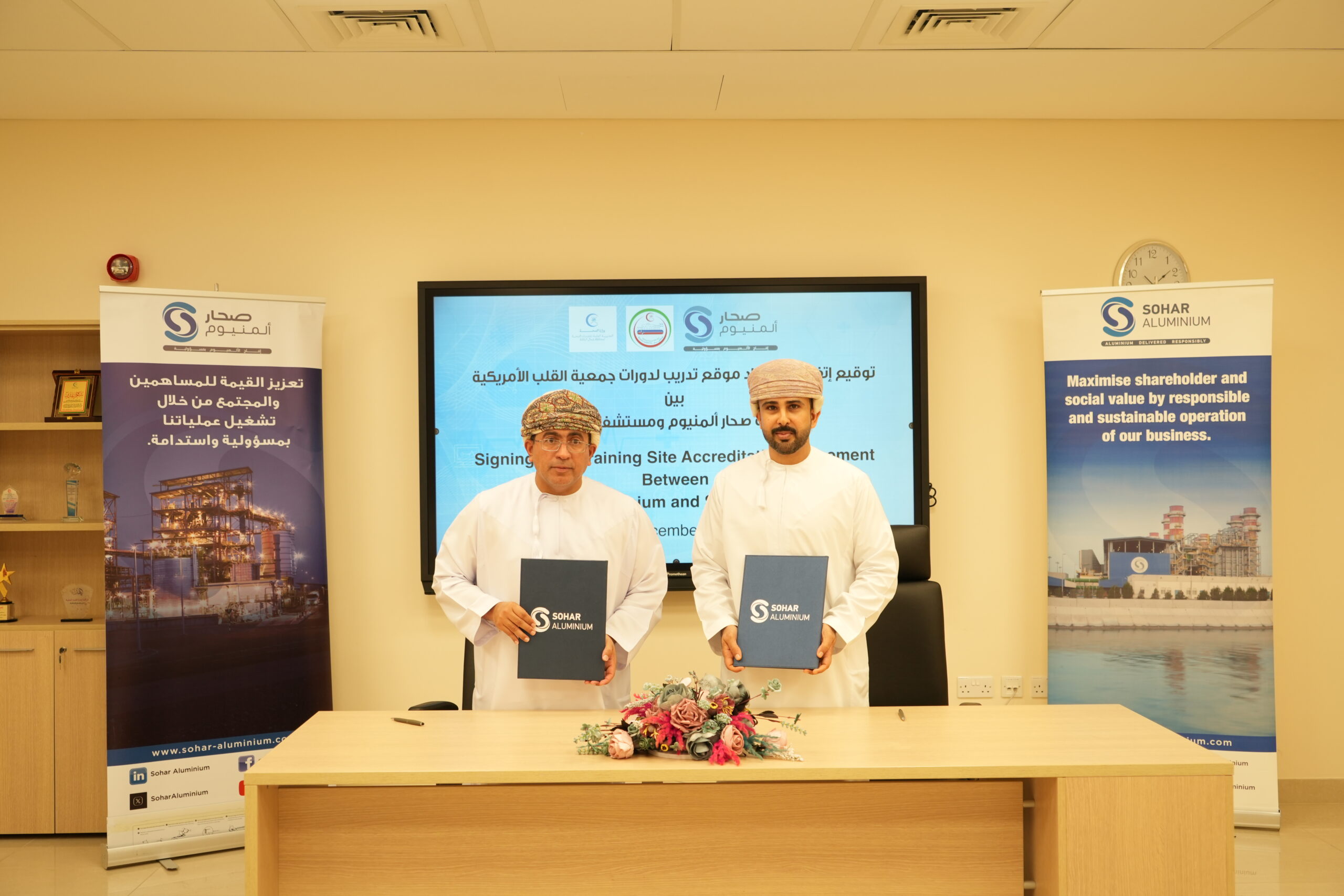 وقعت شركة صحار ألمنيوم ومستشفى صحار، وهو أحد مراكز التدريب المعتمدة لدى جمعية القلب الأمريكية، اتفاقية لاعتماد معهد صحار للتدريب الصناعي كمركز تدريب معتمد لتقديم دورات جمعية القلب الأمريكية بما يتوافق مع معايير التدريب المعتمدة منالجمعية.