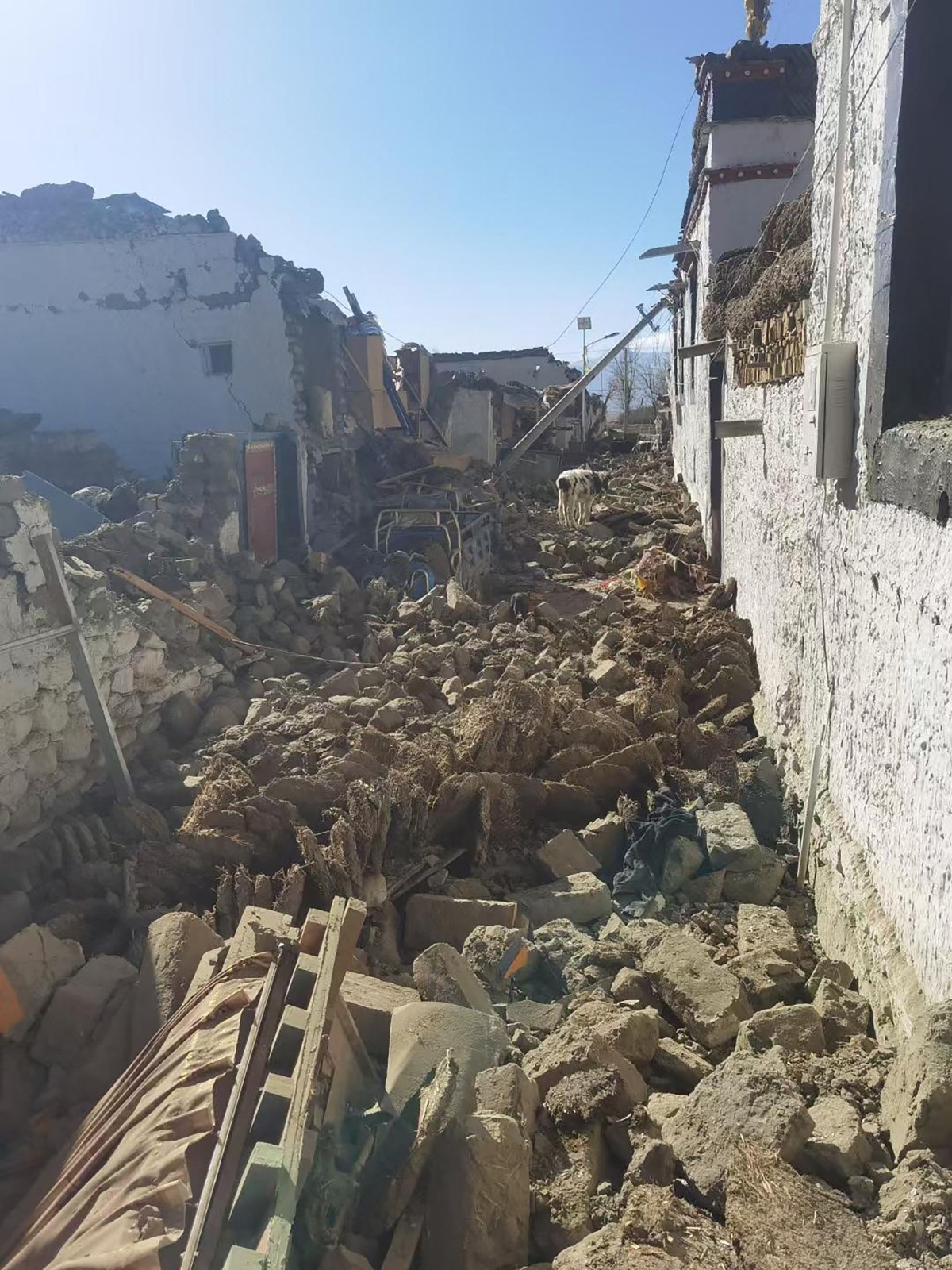 وتعرض أكثر من ألف منزل للتدمير في المنطقة القاحلة والنائية، حسبما أفاد تلفزيون الصين المركزي الحكومي. وفي مقطع الفيديو نشره التلفزيون، ظهر انقاض مبعثرة في الشوارع وسيارات مدمرة.