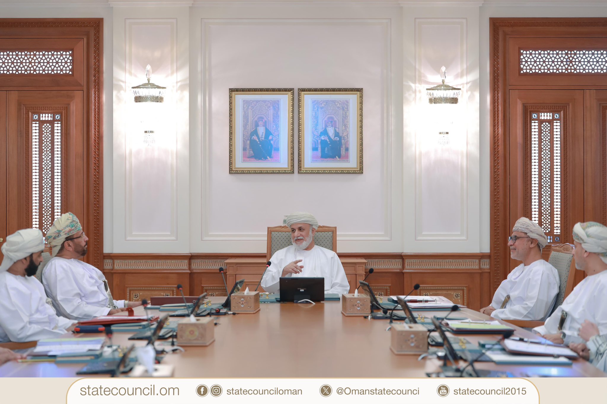 برئاسة معالي الشيخ عبدالملك بن عبدالله الخليلي رئيس #مجلس_الدولة، مكتب المجلس يعقد اجتماعه الثالث لدور الانعقاد العادي الثاني من الفترة الثامنة، بحضور المكرمين أعضاء مكتب المجلس، وسعادة أمين عام المجلس.
