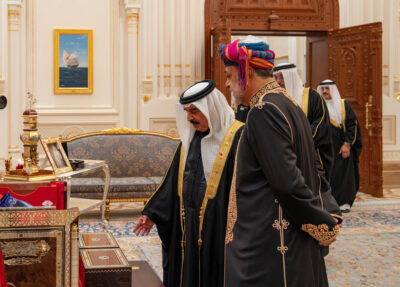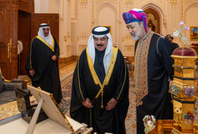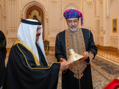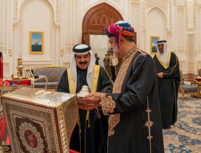جلالة السلطان وملك البحرين يتبادلان الهدايا التذكارية