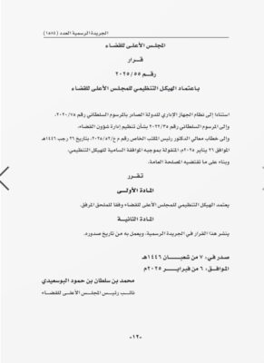 أصدر المجلس الأعلى للقضاء قرارين جاء القرار الأول عن اعتماد الهيكل التنظيمي للمجلس ويعتمد وفقا للملحق المرفق، اليوم الأحد.