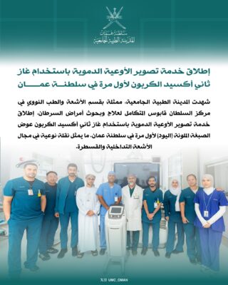 في خطوة هامة تعكس التزام #المدينة_الطبية_الجامعية بتوطين أحدث التقنيات الطبية، شهد قسم الأشعة والطب النووي في مركز السلطان قابوس المتكامل لعلاج وبحوث أمراض السرطان، إطلاق خدمة تصوير الأوعية الدموية باستخدام غاز ثاني أكسيد الكربون عوض الصبغة التقليدية(اليود) لأول مرة في سلطنة عمان.