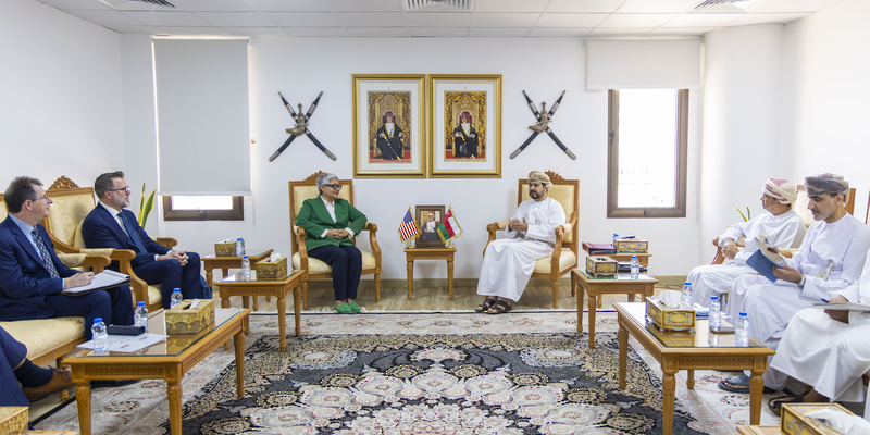 وأكد معالي قيس اليوسف خلال اللقاء على عمق الشراكة العُمانية الأمريكية وحرص سلطنة عُمان على تطوير علاقاتها التجارية مع الولايات المتحدة الأمريكية، مرحبًا بزيادة انخراط القطاع الخاص الأمريكي في السوق العُمانية والاستفادة من المزايا الاستثمارية التي توفرها سلطنة عُمان، مشيرًا إلى أهمية استمرار الحوار المشترك لتوسيع آفاق التعاون في مجالات التجارة والاستثمار.