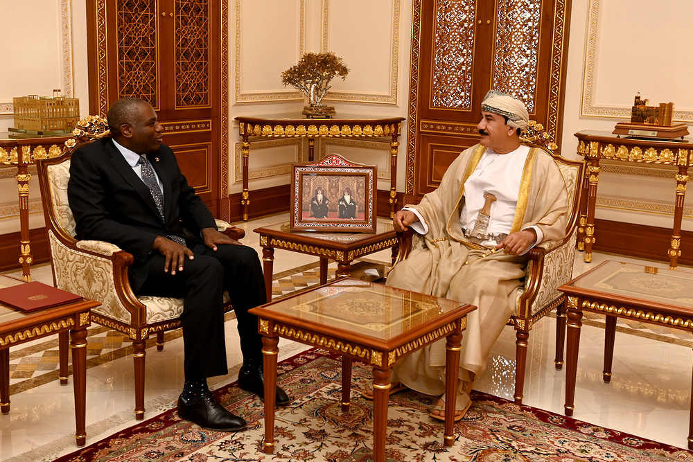 استقبل معالي الفريق أول سُلطان بن محمد النعماني وزير المكتب السُّلطاني اليوم بمكتبه معالي ديفيد لامي وزير الخارجية والكومنولث والتنمية بالمملكة المتحدة والوفد المرافق له.