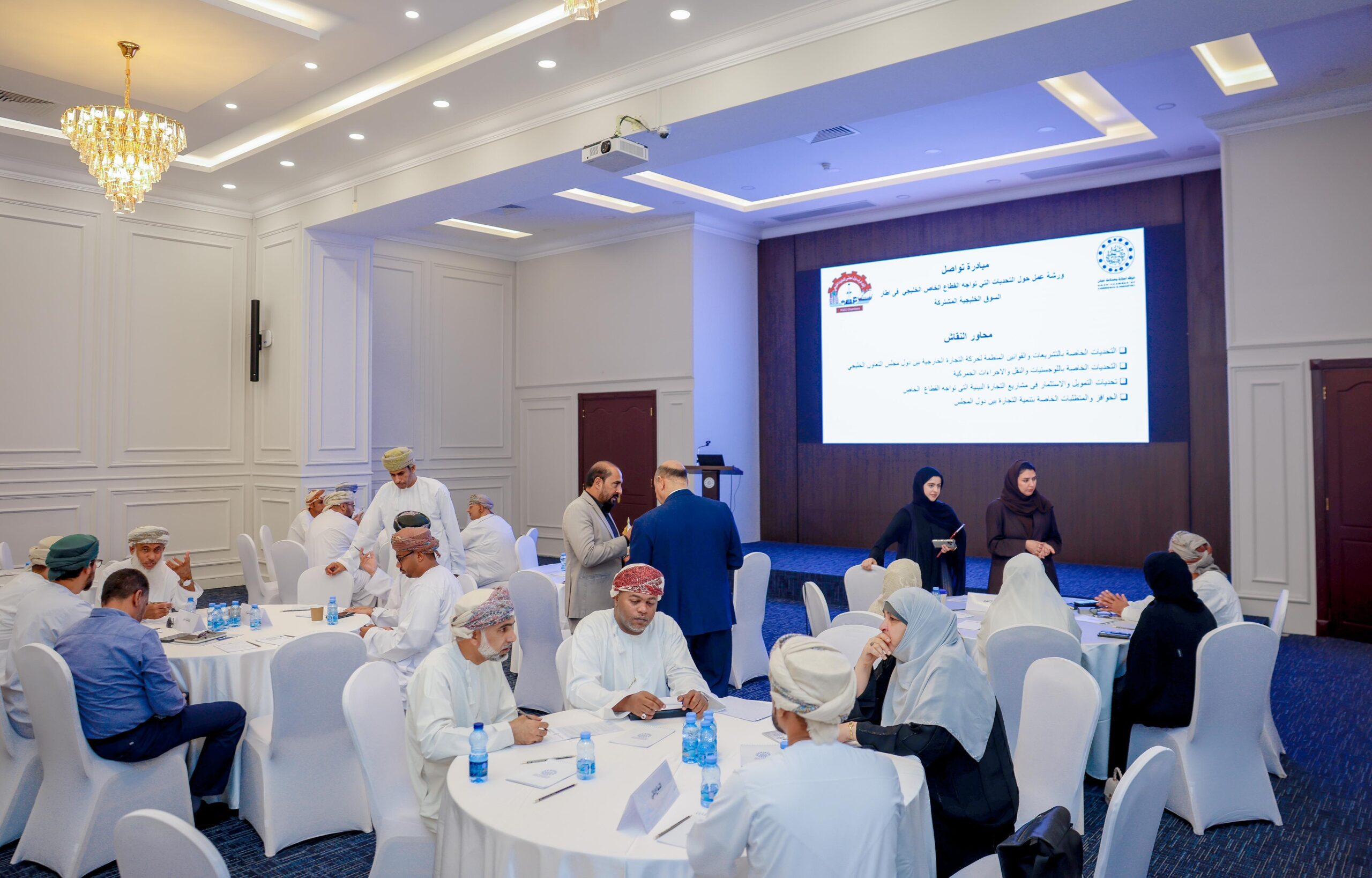 نظمت غرفة تجارة وصناعة عمان بالتعاون مع اتحاد غرف دول مجلس التعاون الخليجي اليوم الأربعاء ” 7 مايو 2025″ حلقة عمل حول “التحديات التي تواجه القطاع الخاص الخليجي في إطار السوق الخليجية المشتركة”، بحضور زكريا بن عبدالله السعدي الرئيس التنفيذي بغرفة تجارة وصناعة عمان وعدد من أصحاب وصاحبات الأعمال، وذلك في المقر الرئيسي للغرفة بمسقط.