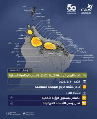 الارصاد الجوية : نشاط السحب الركامية مع وجود رياح هابطة نشطة اليوم