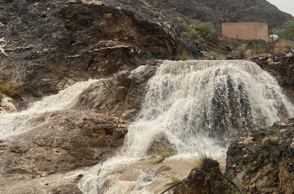 وأدى هطول الأمطار إلى جريان عدد من الشعاب والمسيلات الجبلية.