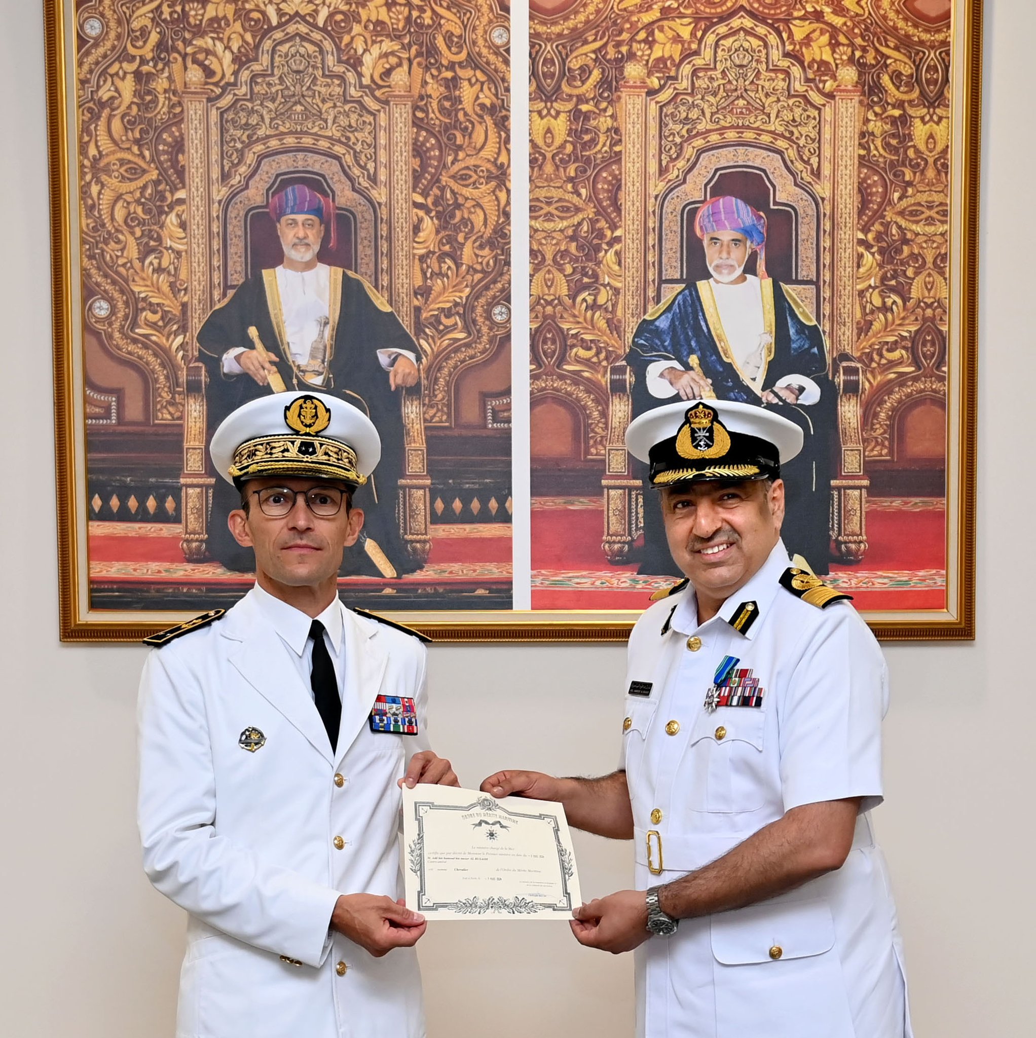 الحكومة الفرنسية تمنح العميد الركن بحري عادل بن حمود البوسعيدي رئيس مركز الأمن البحري وسام الاستحقاق البحري الفرنسي نظير جهوده في تعزيز التعاون الثنائي في مجالات الأمن البحري بين البلدين الصديقين.