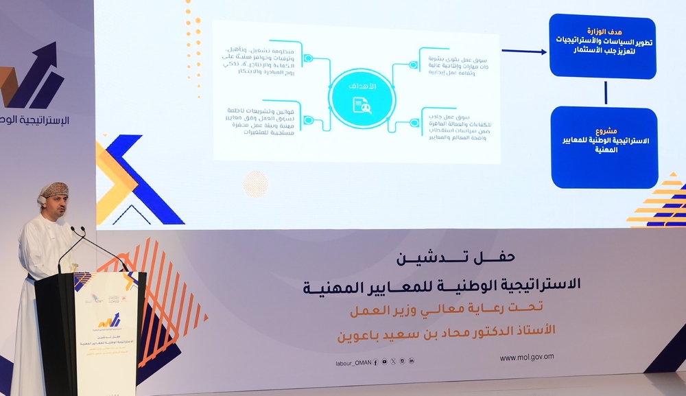 وأشار إلى أن الاستراتيجية الوطنية للمعايير المهنية، رؤية وطنية واضحة نحو سوق عمل منظم، ومهن قائمة على الكفاءة، ومجتمع مهني مزدهر يليق بسلطنة عُمان وبقدرات أبنائها، كما تعكس الالتزام بتطوير القوى العاملة الوطنية وتعزيز قدرتها التنافسية.