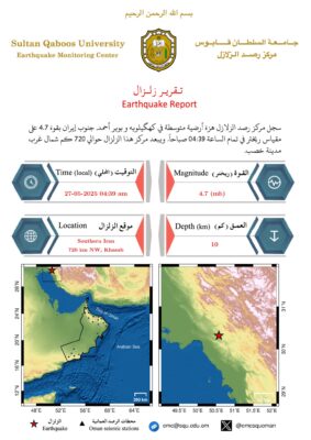 رصد هزة أرضية تبعد 720 كم شمال غرب مدينة خصب