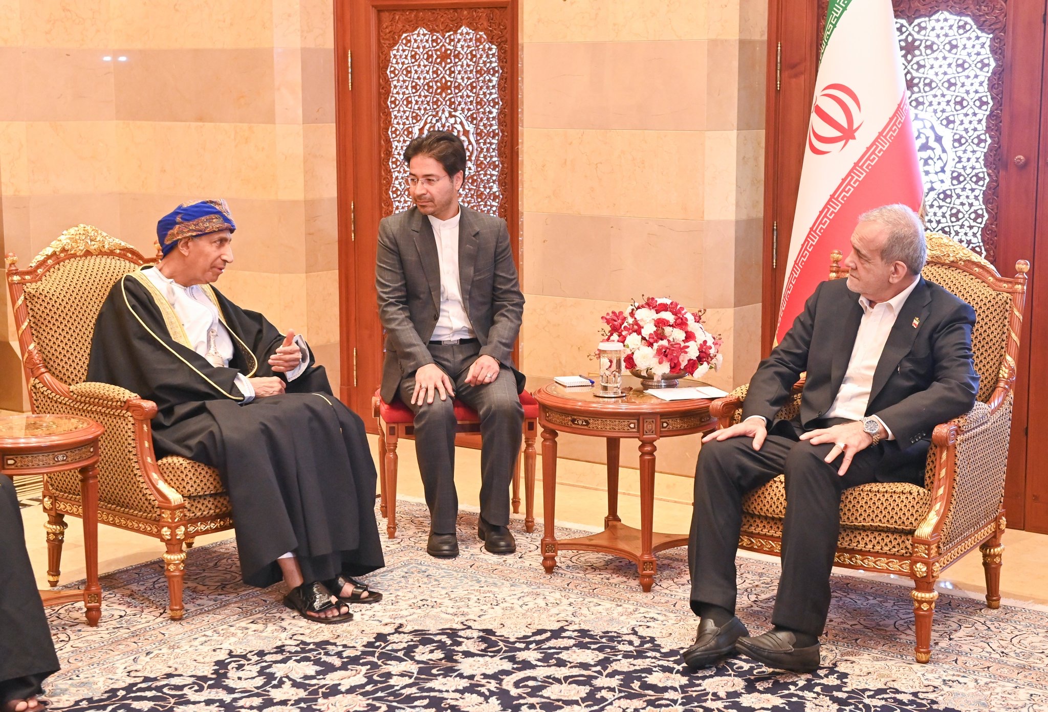 استقبل فخامة الرئيس الدكتور مسعود بزشكيان رئيس الجمهورية الإسلامية الإيرانية بمقر إقامته بقصر العلم العامر بمسقط، اليوم صاحب السمو السيد فهد بن محمود آل سعيد نائب رئيس الوزراء لشؤون مجلس الوزراء.