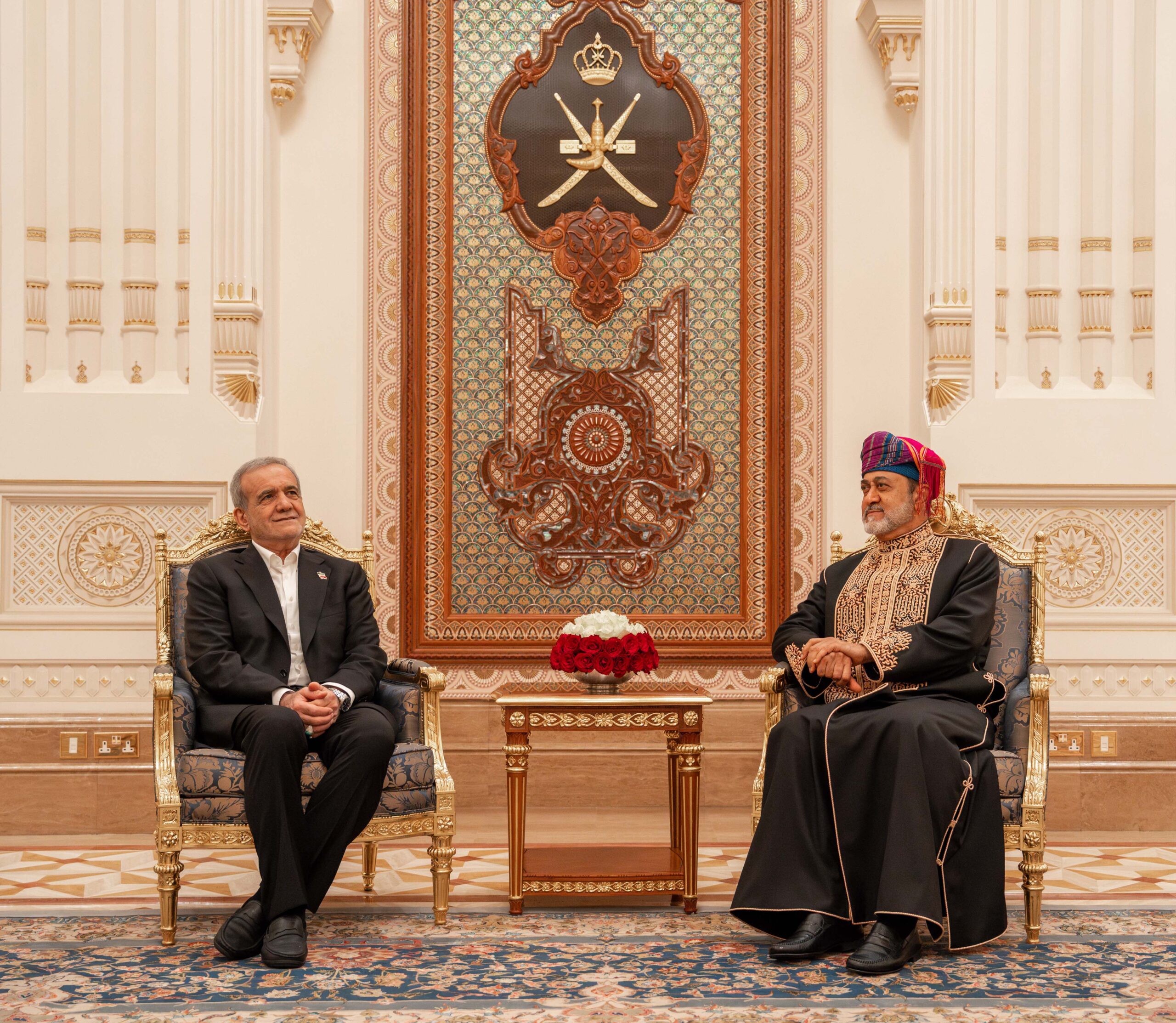 جلالة السُّلطان المعظّم /حفظه الله ورعاه/ يُقيم مأدبة غداء خاصّة تكريمًا لفخامة الرئيس الدكتور مسعود بزشكيان رئيس الجمهورية الإسلامية الإيرانية بضيافة قصر العلم العامر؛ احتفاءً بزيارة فخامته الرسميّة لسلطنة عُمان، وبعد المأدبة ودّع جلالة السُّلطان المعظّم فخامة الرئيس الضيف، راجيًا له عودًا حميدًا إلى بلاده.