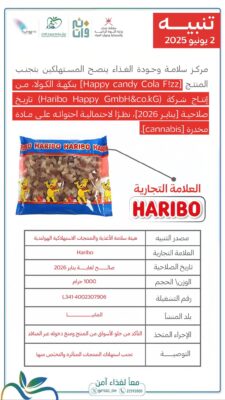 وهج الخليج - مسقط حذر مركز سلامة وجودة الغذاء المستهلكين بتجنب المنتج Happy Candy Cola Fizz بنكهة الكولا، نظرًا لاحتمالية احتوائه على مادة مخدرة.