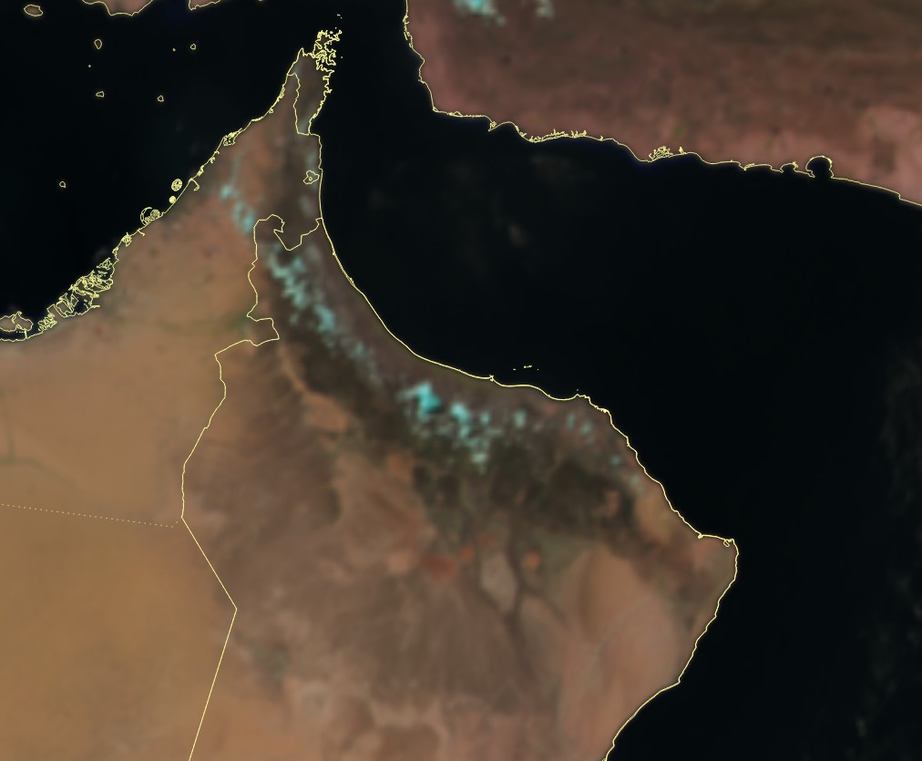هطول أمطار متفرقة متفاوتة الغزارة على أجزاء من الولايات الواقعة على سلسلة جبال الحجر مع استمرار فرص هطول الأمطار و نشاط خلايا رعدية مصحوبة برياح هابطة نشطة وتوسعها خلال الساعات القادمة بإذن الله