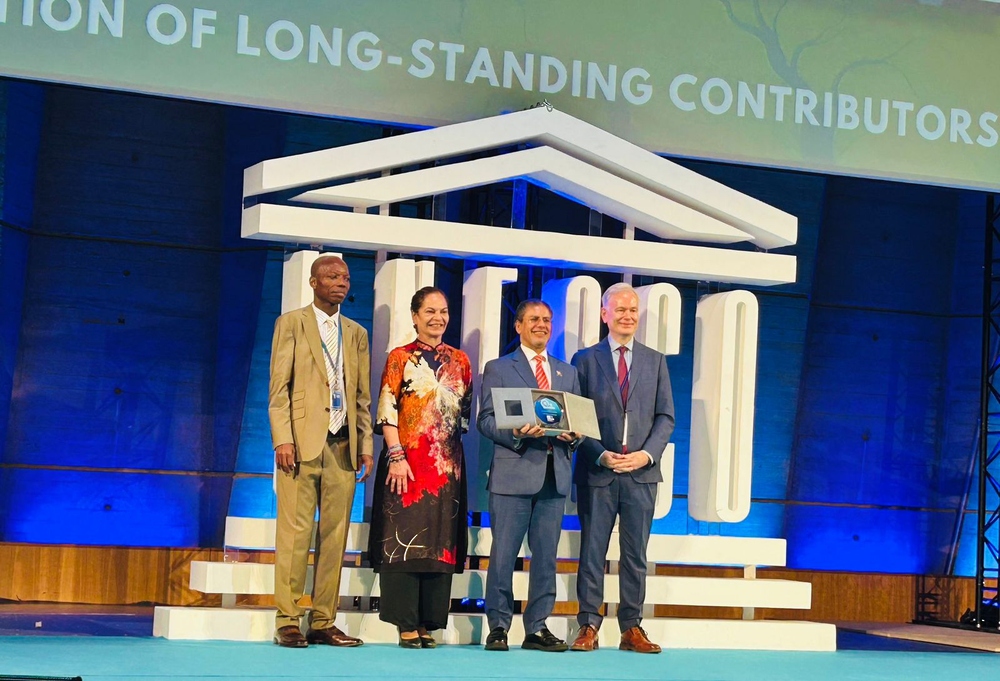 كُرّمت سلطنة عُمان نظير مساهمتها الفاعلة في البرنامج الهيدرولوجي الحكومي الدولي (IHP)، خلال السنوات الماضية والستين عامًا من التزامها بدعم علوم المياه، وذلك في احتفال منظمة الأمم المتحدة للتربية والعلم والثقافة (اليونسكو)، في مقرها بالعاصمة الفرنسية باريس.