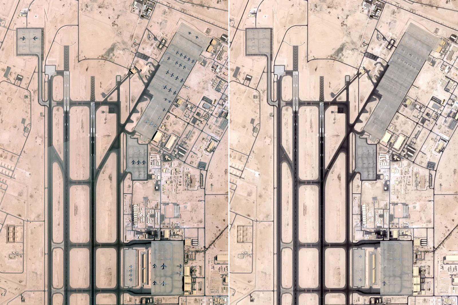 وتظهر صور الأقمار الاصطناعية من شركة “بلانت لابس بي بي سي” وجود القبة المثلثية في قاعدة العديد الجوية صباح 23 يونيوقبل ساعات من الهجوم.