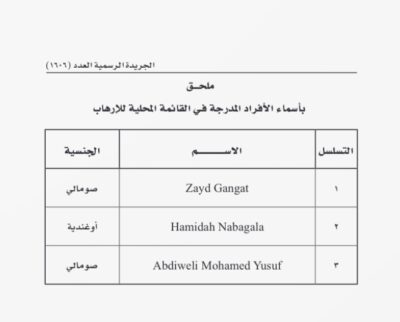 إدراج 3 أشخاص في القائمة المحلية للإرهاب