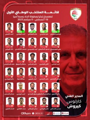 وهج الخليج ـ مسقط نشر المنتخب الوطني العماني لكرة القدم عبر حسابه الرسمي على منصة اكس قائمة المنتخب الوطني الأول لمعسكر تركيا وبطولة اتحاد وسط آسيا كما هو موضح أدناه