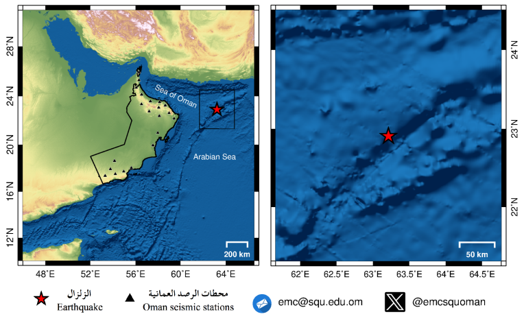 سجل مركز رصد الزلازل هزة ارضية في بحر العرب بقوة 3.8 على مقياس ريختر في تمام الساعة 7:40 صباحا. ويبعد مركز هذا الزلزال حوالي 379 كم عن مدينة صور.