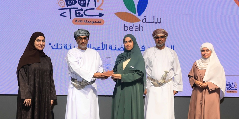 كما شهد الحفل تكريم ثلاثة متأهلين في برنامج الشركة العُمانية القابضة لخدمات البيئة “بيئة تك”، فقد حصدت شركة ” ZaytTech ” المركز الأول بابتكار رائد يقوم على تحويل مخلفات زيت الطهي المنزلي إلى مورد ذي قيمة، مستفيدة من تقنيات إنترنت الأشياء وشبكات توصيل الطعام، لتقدّم حلاً منخفض التكلفة، قابلًا للتوسع، ومستدامًا في سلطنة عُمان.