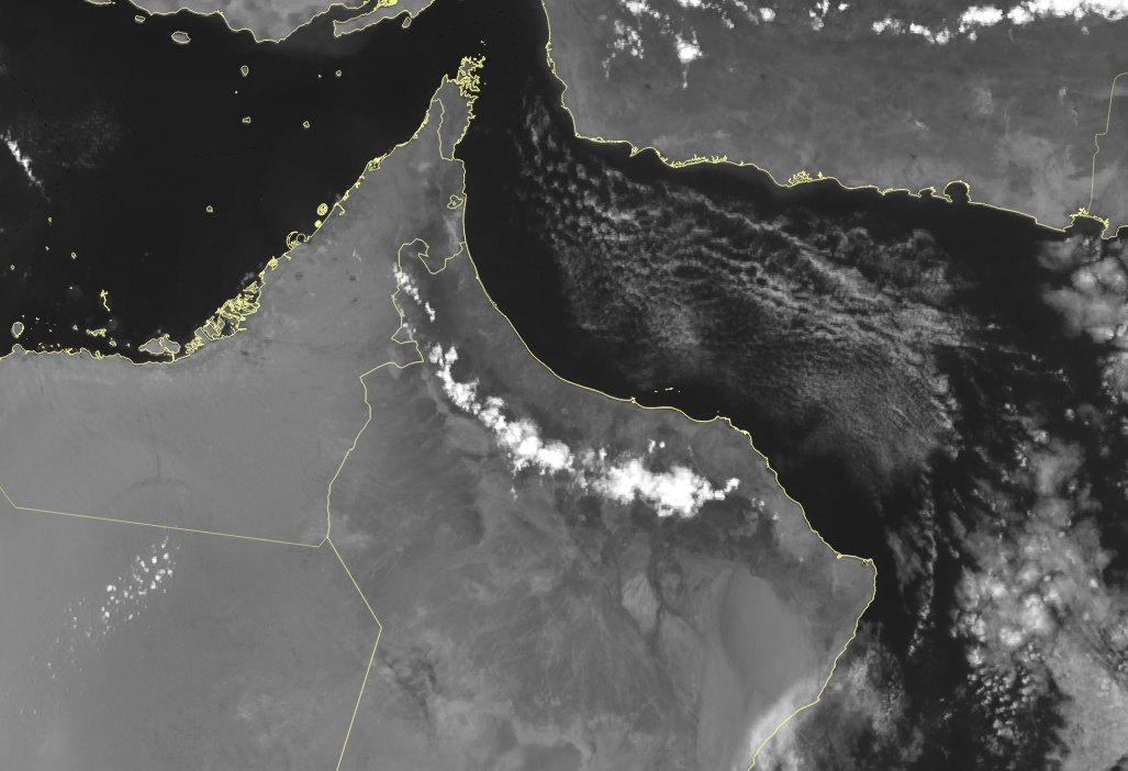 أوضحت الأرصاد الجوية العمانية أنه سيستمر تكاثف وتكون السحب على سلسلة جبال الحجر والمناطق المجاورة مع فرص لهطول أمطار رعدية متفاوتة الغزارة مصحوبة برياح هابطة نشطة.