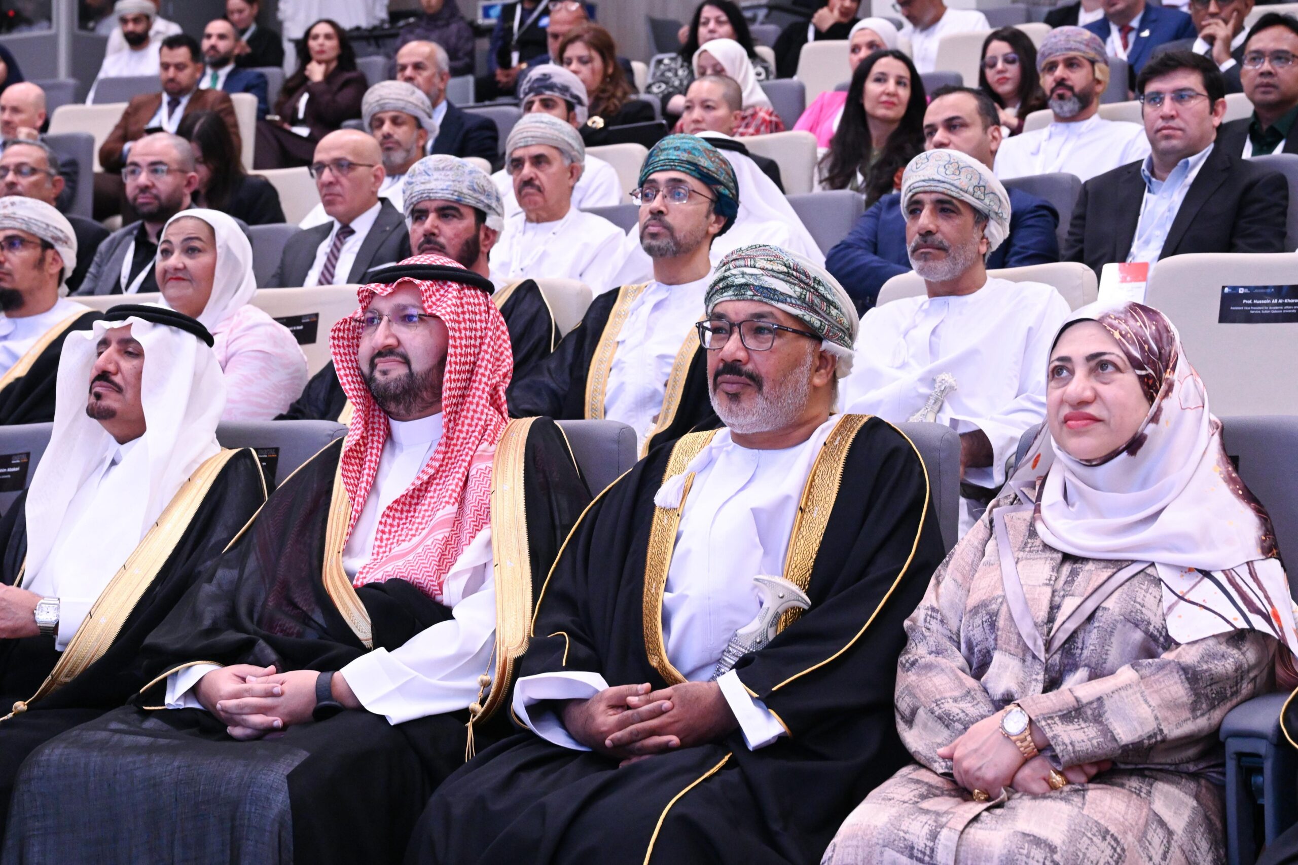 رعى حفل افتتاح فعاليات المؤتمر معالي الدكتور خميس بن سيف الجابري، رئيس وحدة متابعة تنفيذ رؤية عُمان 2040 – بحضور معالي أ.د رحمة المحروقية وزيرة التعليم العالي والبحث العلمي والابتكار وسمو الملكي الأمير عبدالعزيز بن طلال آل سعود، رئيس مجلس أمناء الجامعة العربية المفتوحة.