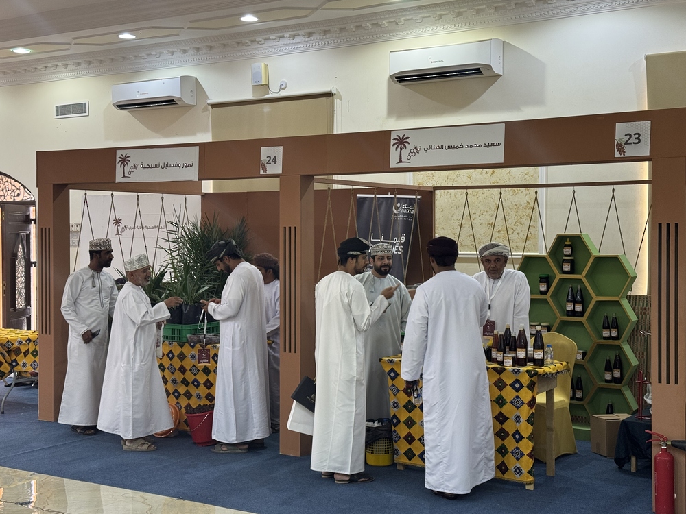 ويستمر المعرض الذي يقام ببلدة وادي العين بولاية عبري لمدة يومين؛ بهدف إبراز وترويج وتسويق المنتجات والصناعات القائمة على التمور والعسل بالمحافظة.