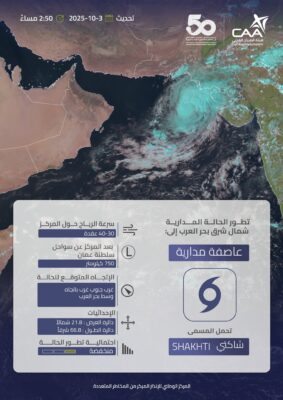 تطور الحالة المدارية في بحر العرب إلى عاصفة “شاكتي”