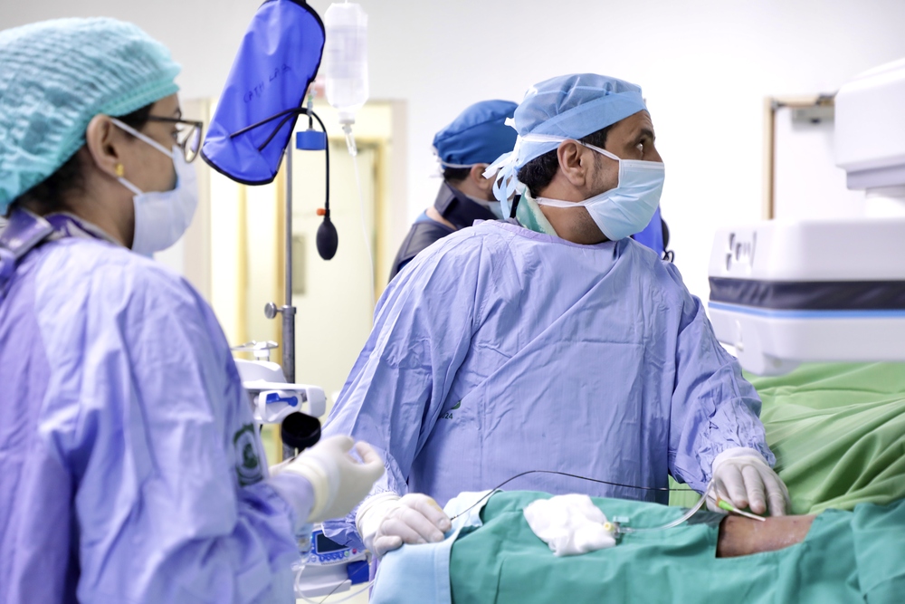 وشملت هذه الإجراءات المتقدمة تقنيات طبية تُنفذ لأول مرة حيث تمّ إجراء قسطرة طرفية باستخدام غاز ثاني أكسيد الكربون بدلًا من الصبغة اليودية، لتقليل المخاطر على وظائف الكلى لدى المرضى المصابين بأمراض كلوية، وتُعدُّ هذه التقنية الثانية من نوعها في سلطنة عُمان.