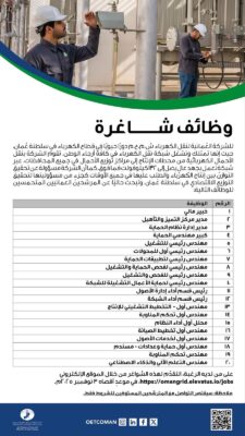 الشركة العمانية لنقل الكهرباء تعلن عن وظائف شاغرة للعمانيين