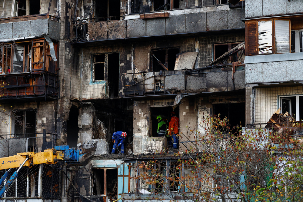 وذكرت خدمة الطوارئ الحكومية الأوكرانية أن 13 شخصًا جرى إنقاذهم من الطوابق العليا للمبنى.