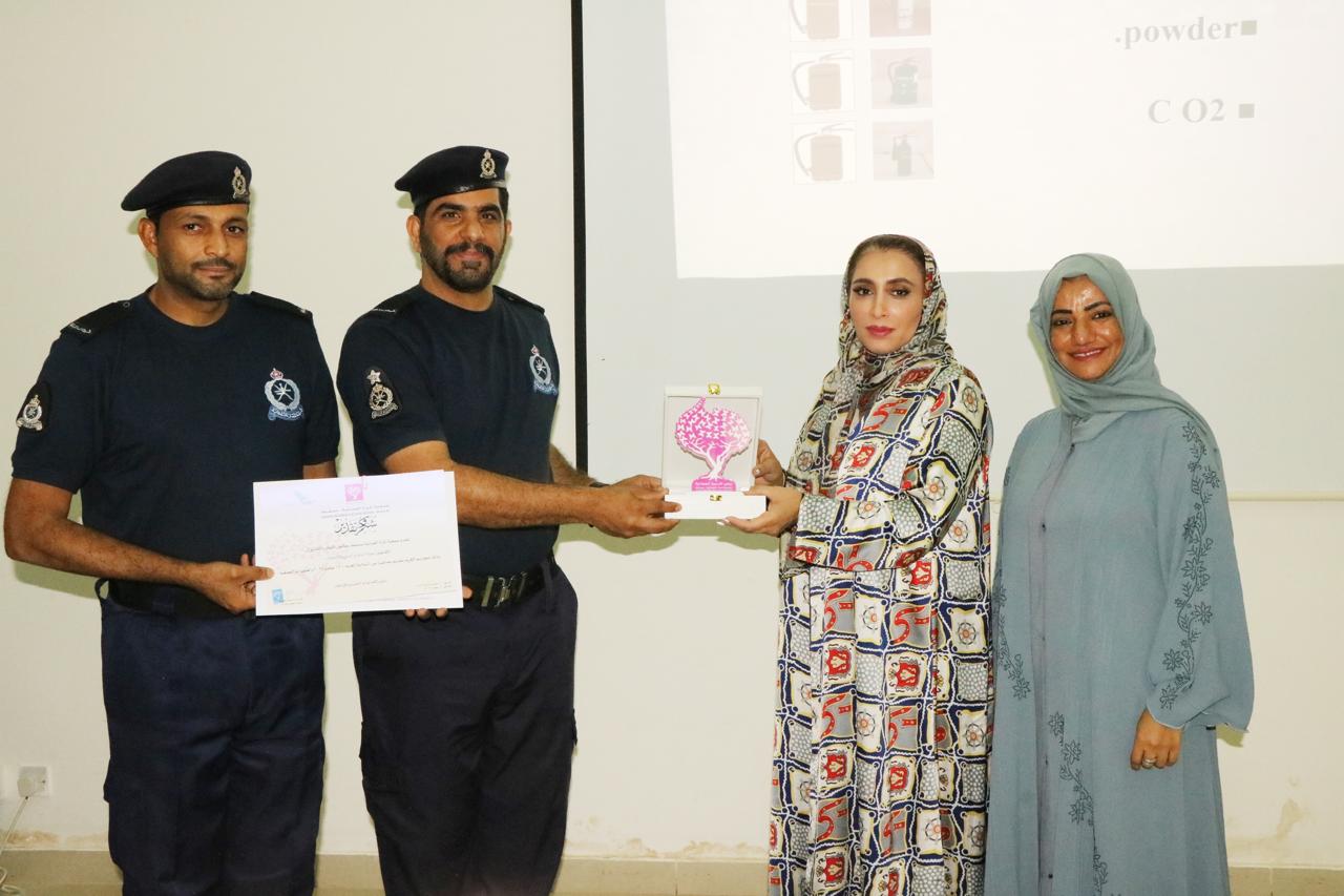 بعدها قامت رئيسة جمعية المرأة العمانية بمسقط بتكريم المحاضرين من هيئة الدفاع المدني والإسعاف، تقديراً لجهودهم ودورهم في تقديم محاضرة أسهمت في رفع مستوى الوعي بالسلامة العامة بين المشاركين