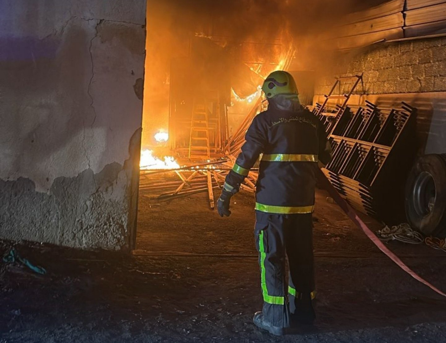 السيطرة على حريق مخزن بولاية السيب دون تسجيل إصابات