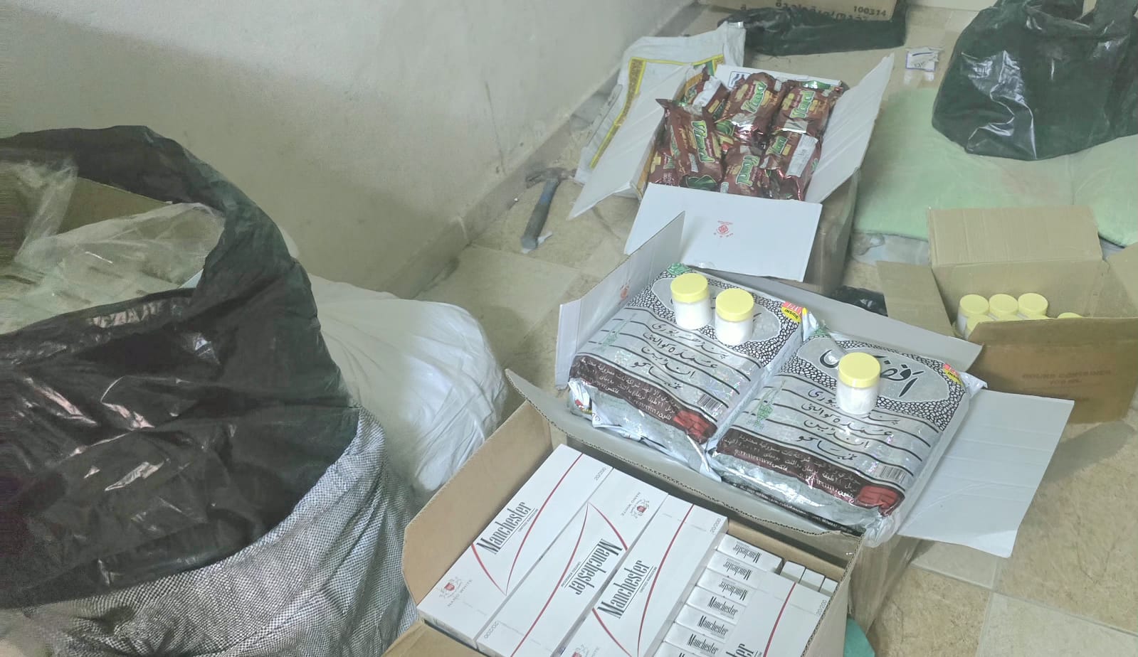 وعلى ضوء هذه المعلومات، وبالتعاون مع الجهات المختصة تمت مداهمة المنزل، حيث أسفرت عن ضبط كميات كبيرة من السجائر الممنوعة والتبغ الممضوغ، حيث بلغ إجمالي المضبوطات (4350) علبة من التبغ والسجائر و”الأفضل”، والتي كانت معدة للبيع بطرق غير مشروعة، الأمر الذي يشكل خطرًا على صحة المستهلكين.